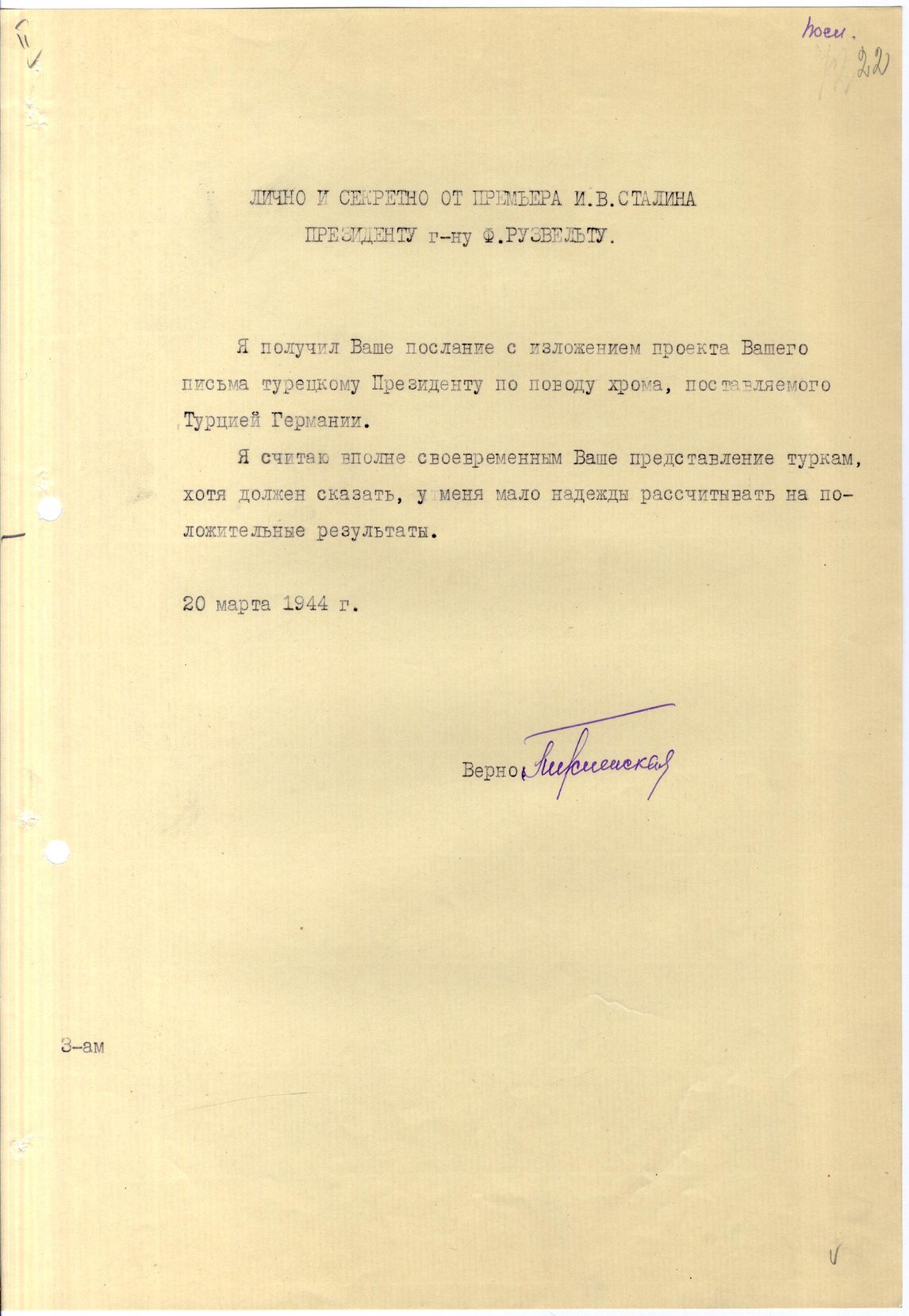 док.8а: Заверенная копия послания Сталина И.В. Рузвельту Ф.