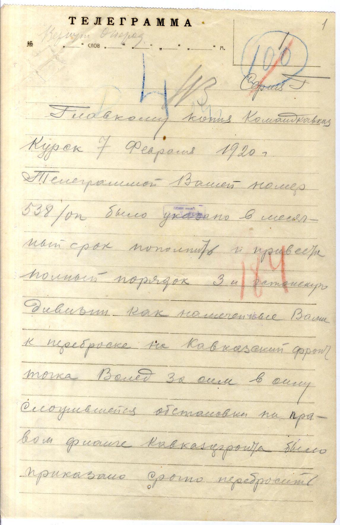 ТЕЛЕГРАММА // ЧЕЙ ДОКУМЕНТ // РВС (РЕВВОЕНСОВЕТ) ЮГО-ЗАПАДНОГО ФРОНТА
