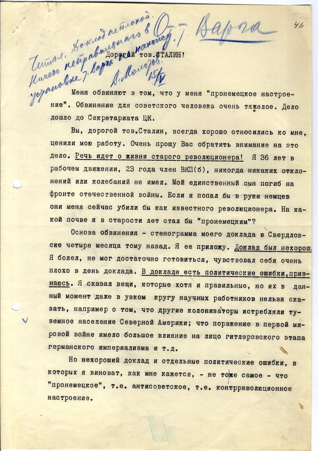 ПИСЬМО // ЧЕЙ ДОКУМЕНТ // ВАРГА ЕВГЕНИЙ САМУИЛОВИЧ, ссс
