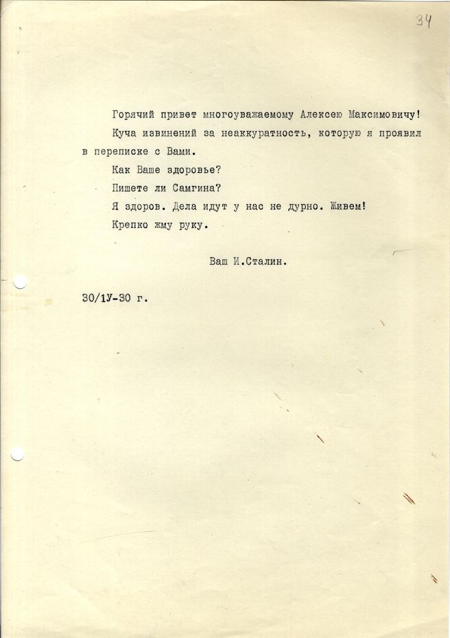 док.8: Письмо Сталина И.В. Горькому А.М.