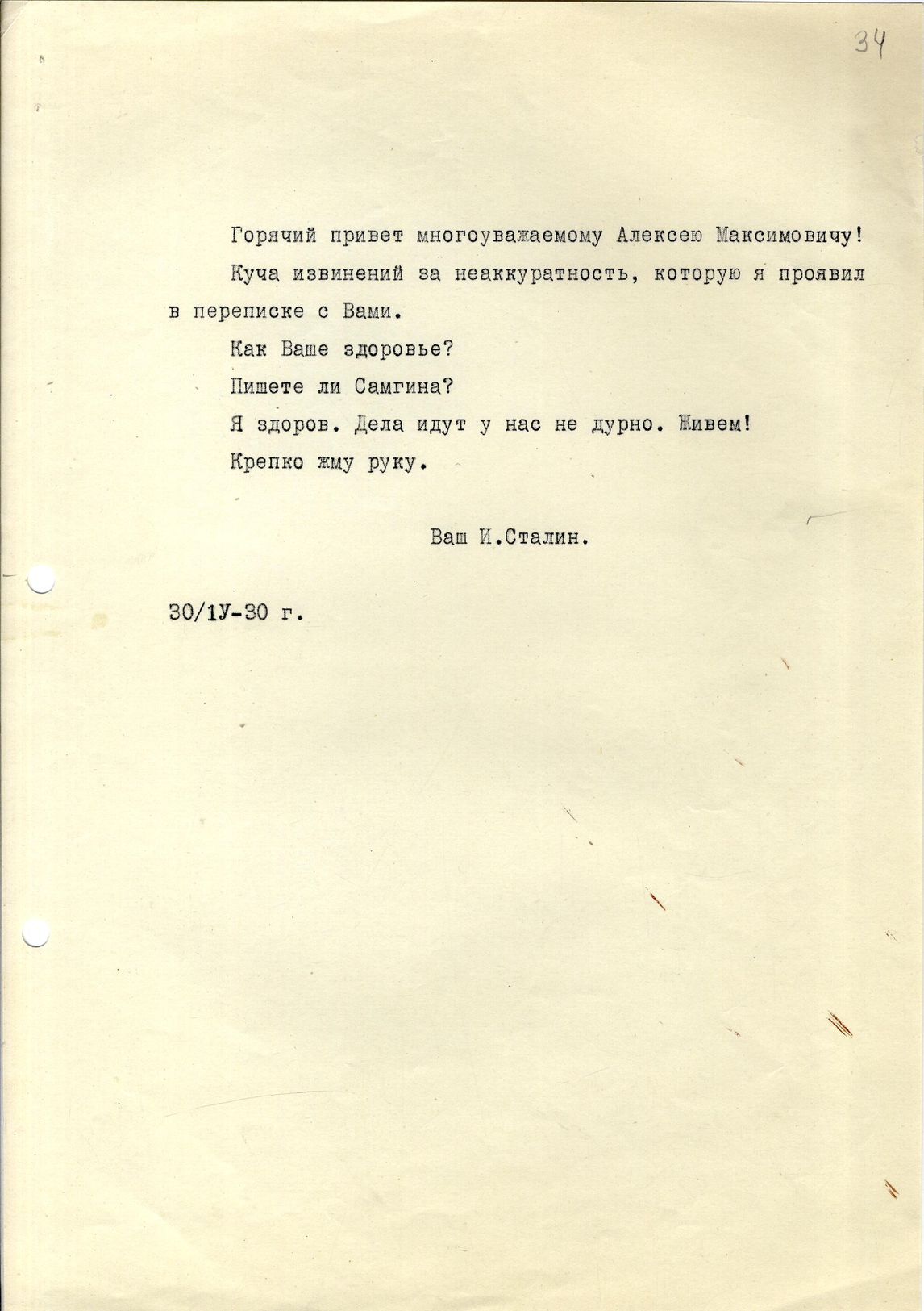 ПИСЬМО // ЧЕЙ ДОКУМЕНТ // СТАЛИН ИОСИФ ВИССАРИОНОВИЧ, ссс