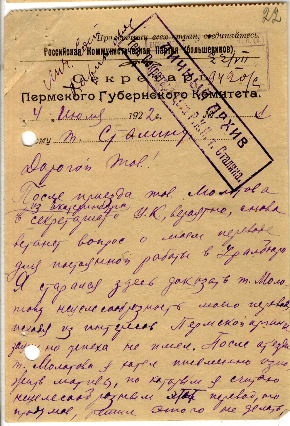 док.9: Письмо Харитонова М. по поводу своего перевода.