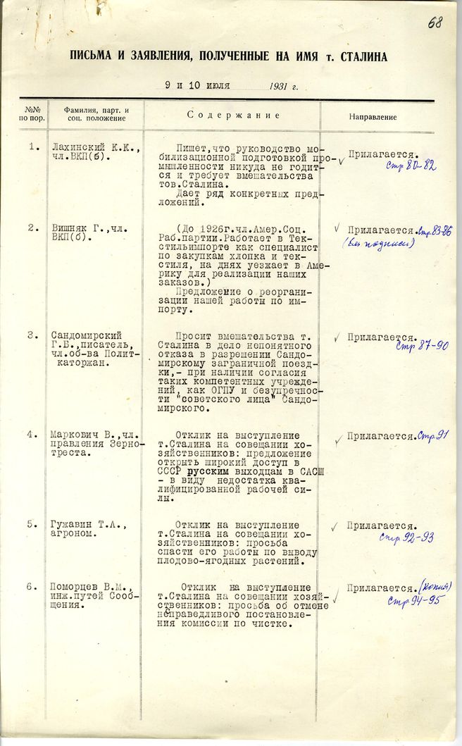 док.18: Сводка на письма и заявления, полученные на имя Сталина И.В.