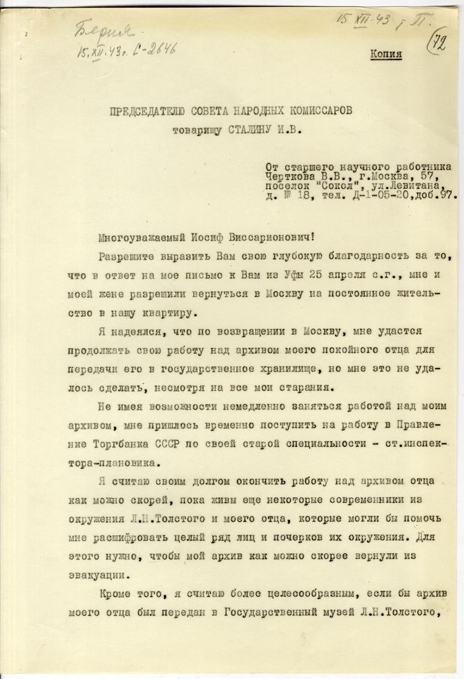 док.38: Письмо Черткова В.В. об архиве своего отца.
