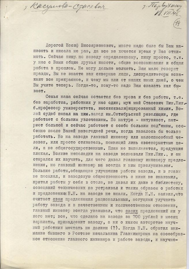 ПИСЬМО // ЧЕЙ ДОКУМЕНТ // КАСУМОВА-СТАСЕВИЧ К., ссс