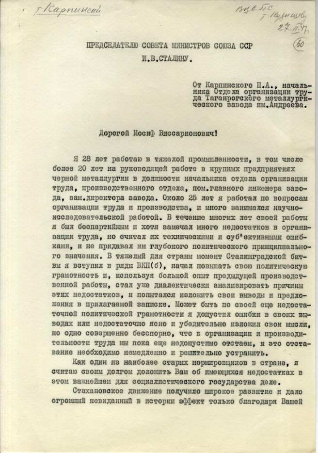 Документ 15. док.15: Письмо Карпинского П.А. из Таганрога