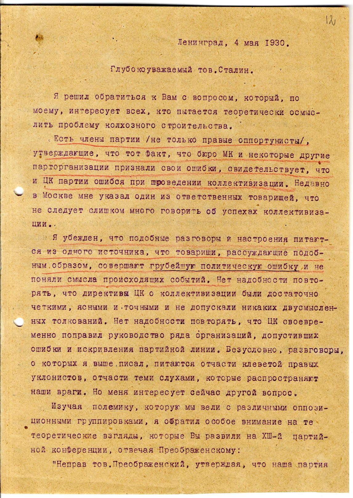 ПИСЬМО // КОМУ ДОКУМЕНТ // СТАЛИН ИОСИФ ВИССАРИОНОВИЧ, ссс