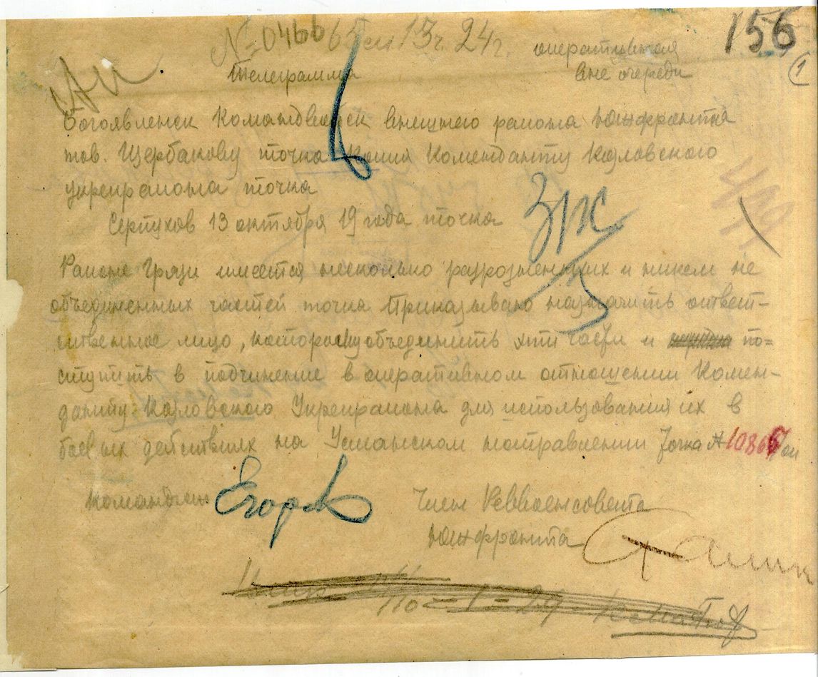 ТЕЛЕГРАММА // ЧЕЙ ДОКУМЕНТ // РВС (РЕВВОЕНСОВЕТ) ЮЖНОГО ФРОНТА