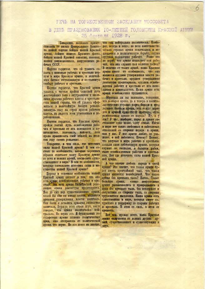 док.4: Речь на торжественном заседании Моссовета в день прзднования десятилетней годовщины Красной Армии.