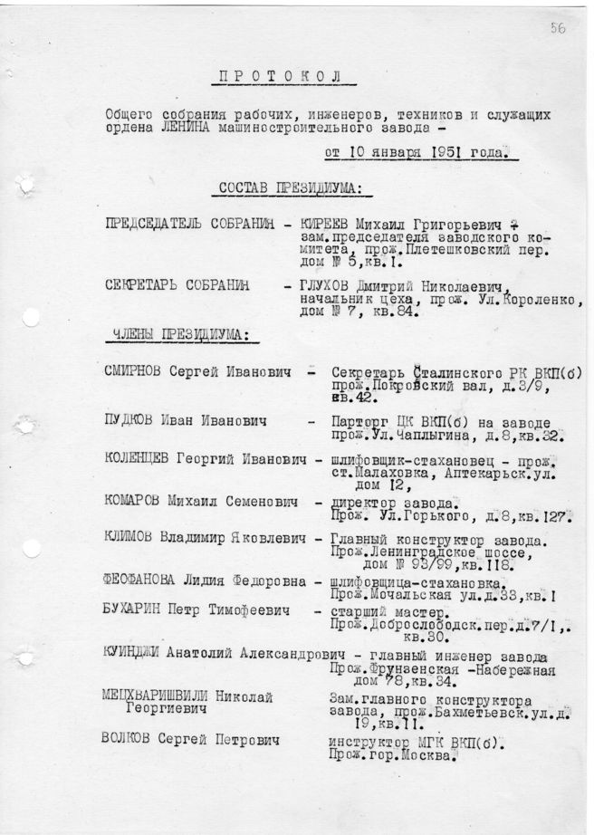 док.5: Протокол общего собрания рабочих, инженеров, техников и служащих ордена Ленина машиностроительного завода. Подлинник