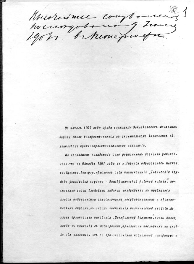 Донесение министра юстиции статс-секретаря Муравьева Н.В. Николаю II об организации и деятельности ЦК Тифлисской социал-демократической организации, аресте, определении наказания членам ЦК, в том числе и Джугашвили И.В.