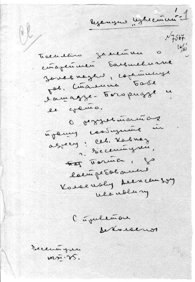Статья Колоскова А.И. о старейшей большевичке Закавказья Бабе Лашадзе-Бочоридзе и ее встрече со Сталиным И.В.