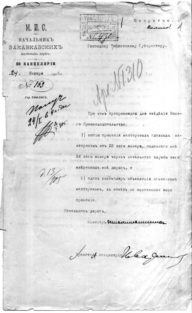 Документы Канцелярии Тифлисского губернатора о забастовочном движении в городе