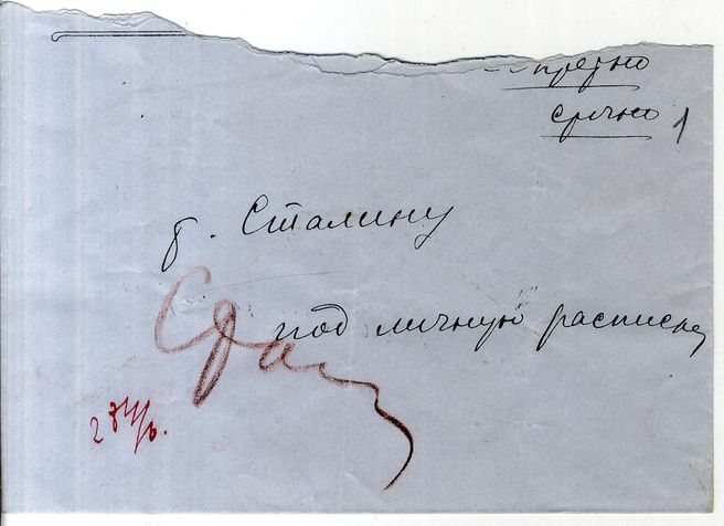 Расписка Сталина И.В. на конверте в получении корреспонденции