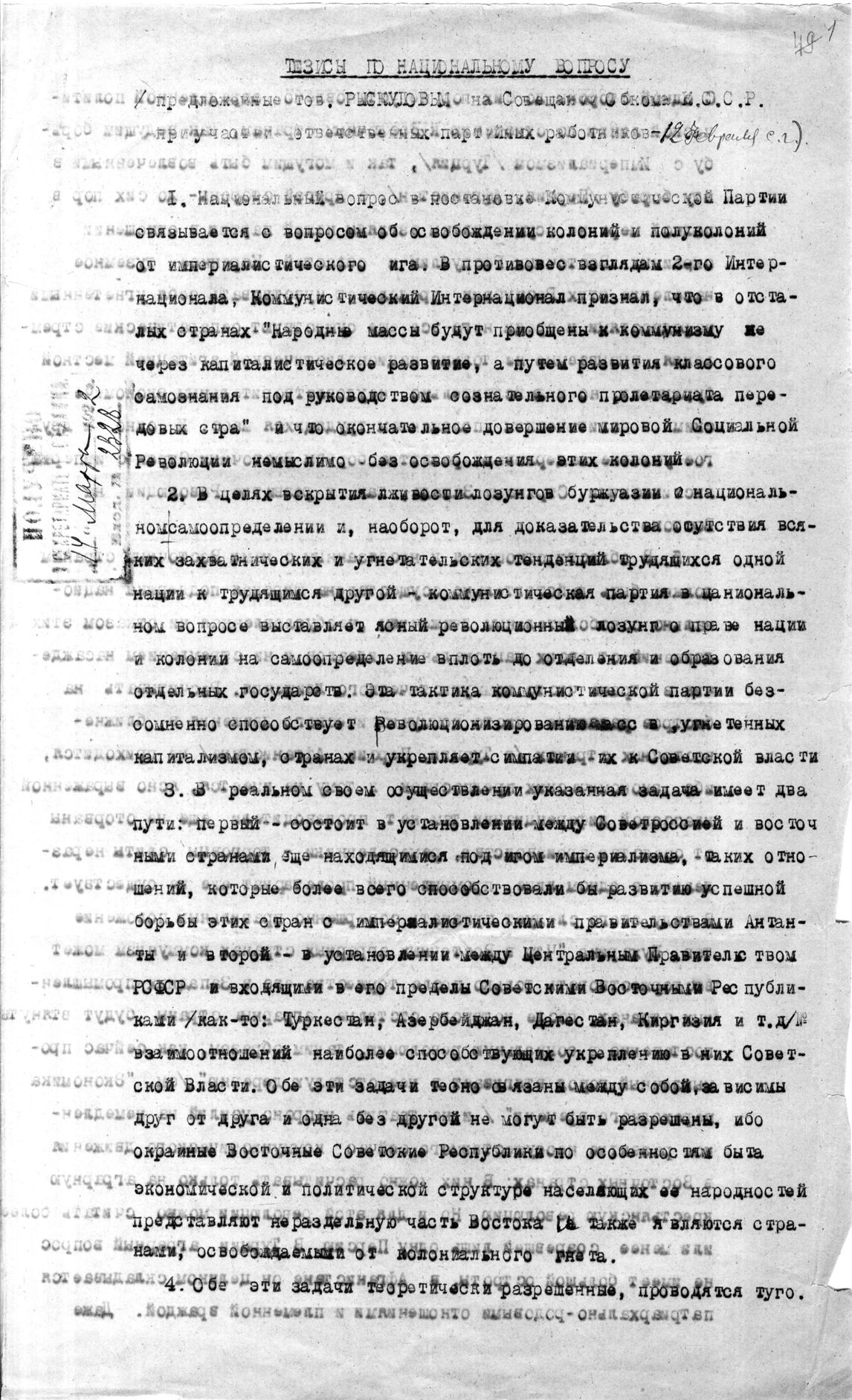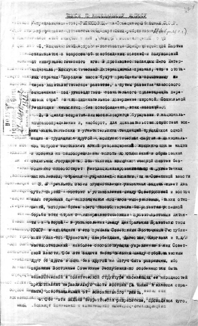 | Заголовок дела | Тезисы по национальному вопросу (1) |