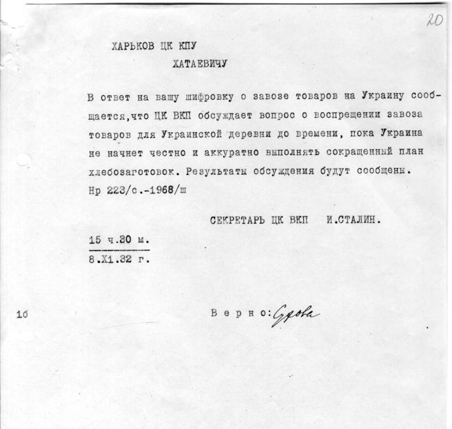 док.16: Шифротелеграмма Сталина И.В. в Харьков