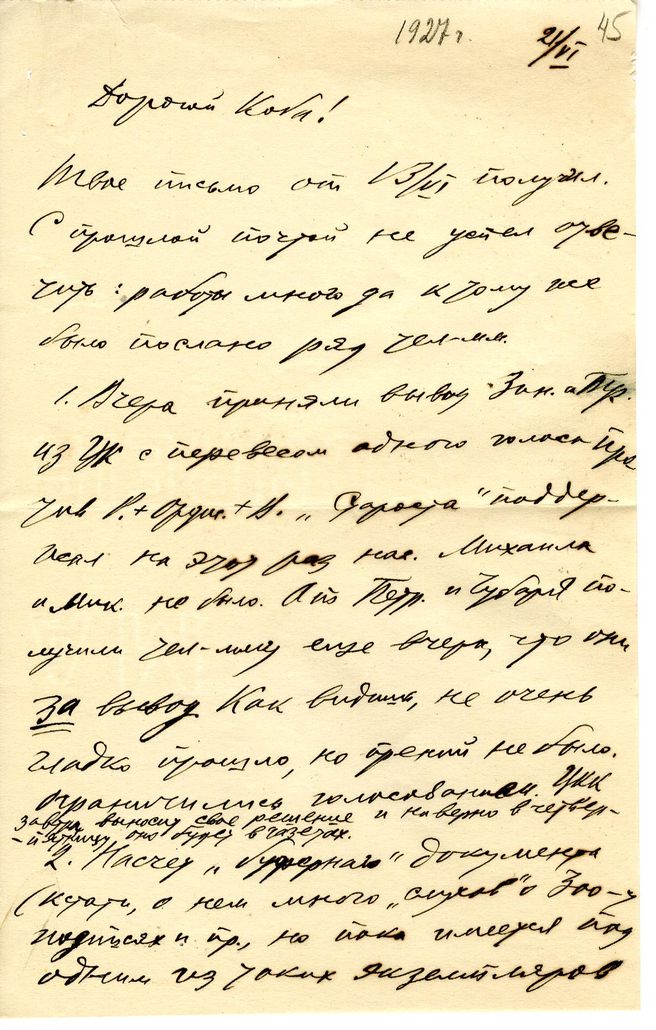 док.14: Письмо Молотова В.М. о выводе Зиновьева Г.Е. и Троцкого Л.Д. из ЦК, о Китае и по другим вопросам.