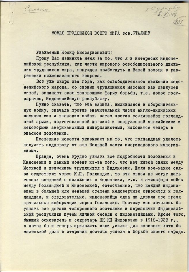 док.31: Письмо Семаоэна с просьбой помочь выехать в Прагу на профсоюзный конгресс.