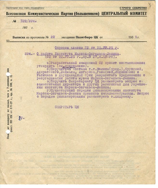 док.5: Постановление Политбюро ЦК ВКП(б) (опросом) об издании Собрания Сочинений Сталина И.В.