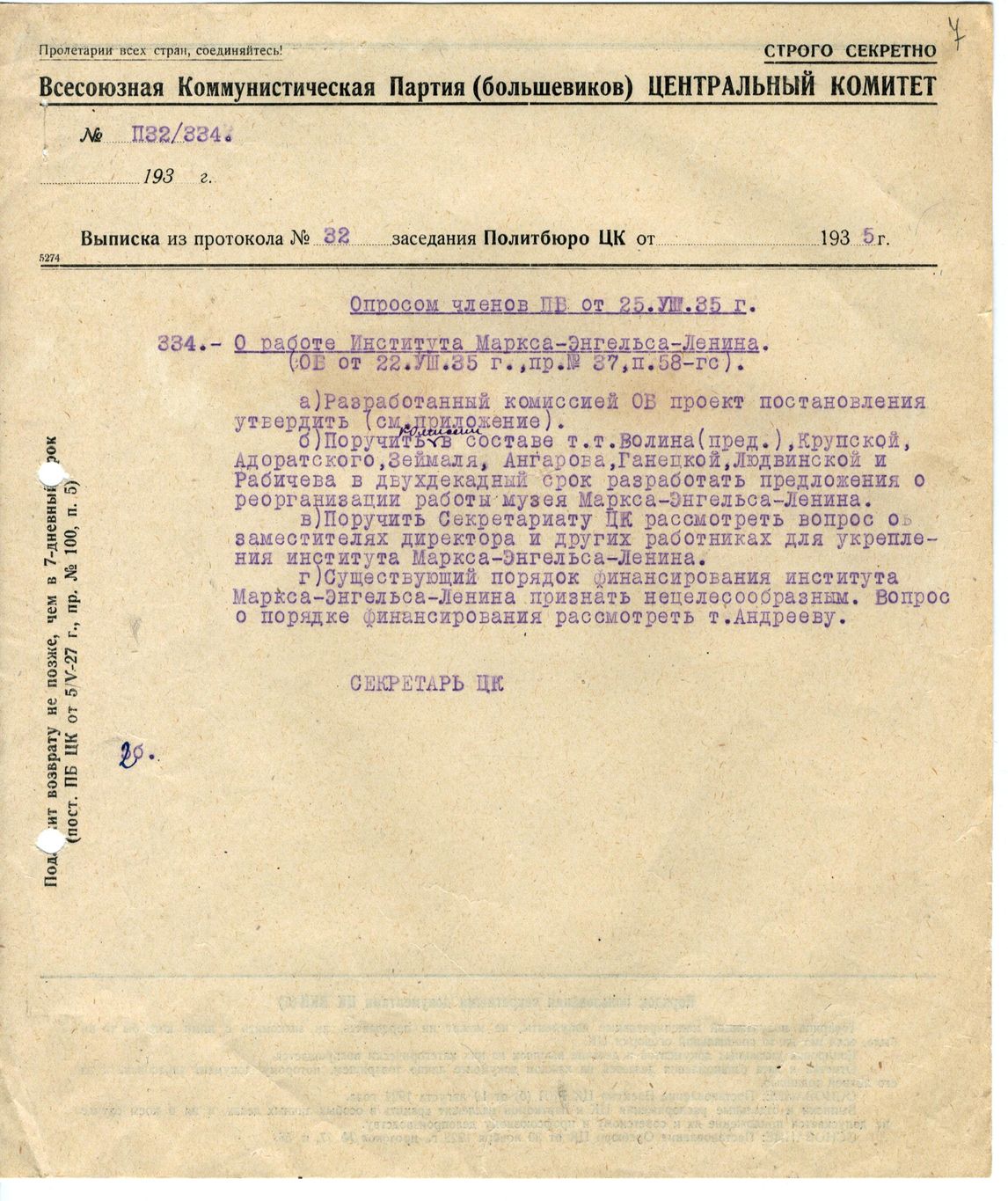 ПОСТАНОВЛЕНИЕ ПОЛИТБЮРО ЦК ВКП(б)
