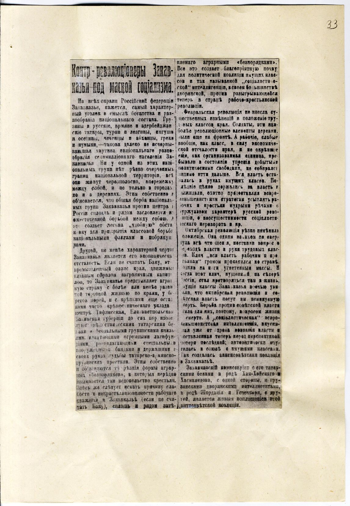 док.16: Статья "Контрреволюционеры Закавказья под маской социализма".