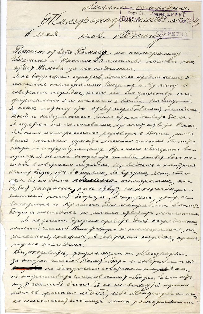ТЕЛЕГРАММА // ЧЕЙ ДОКУМЕНТ // ЧИЧЕРИН ГЕОРГИЙ ВАСИЛЬЕВИЧ, ссс