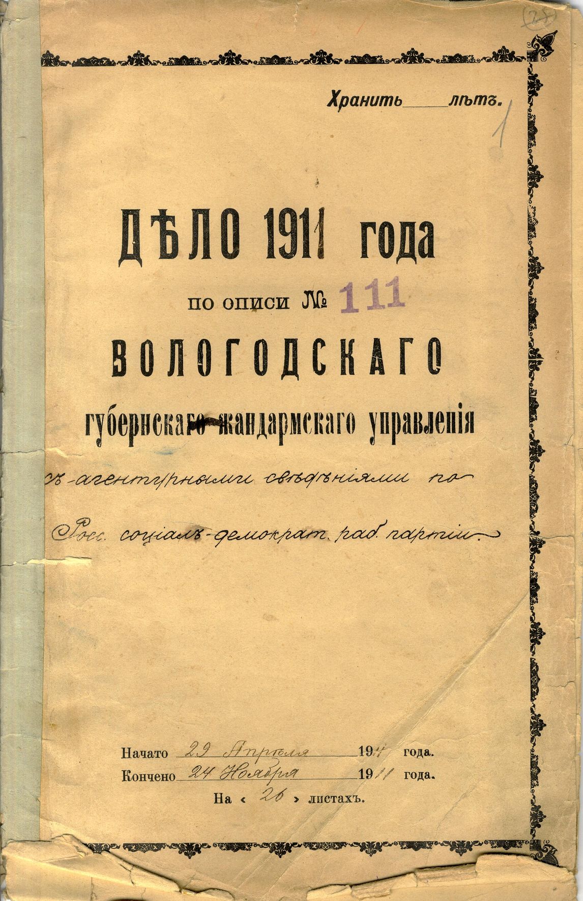 Агентурные сведения Вологодского губернского жандармского управления по наблюдению за членами РСДРП