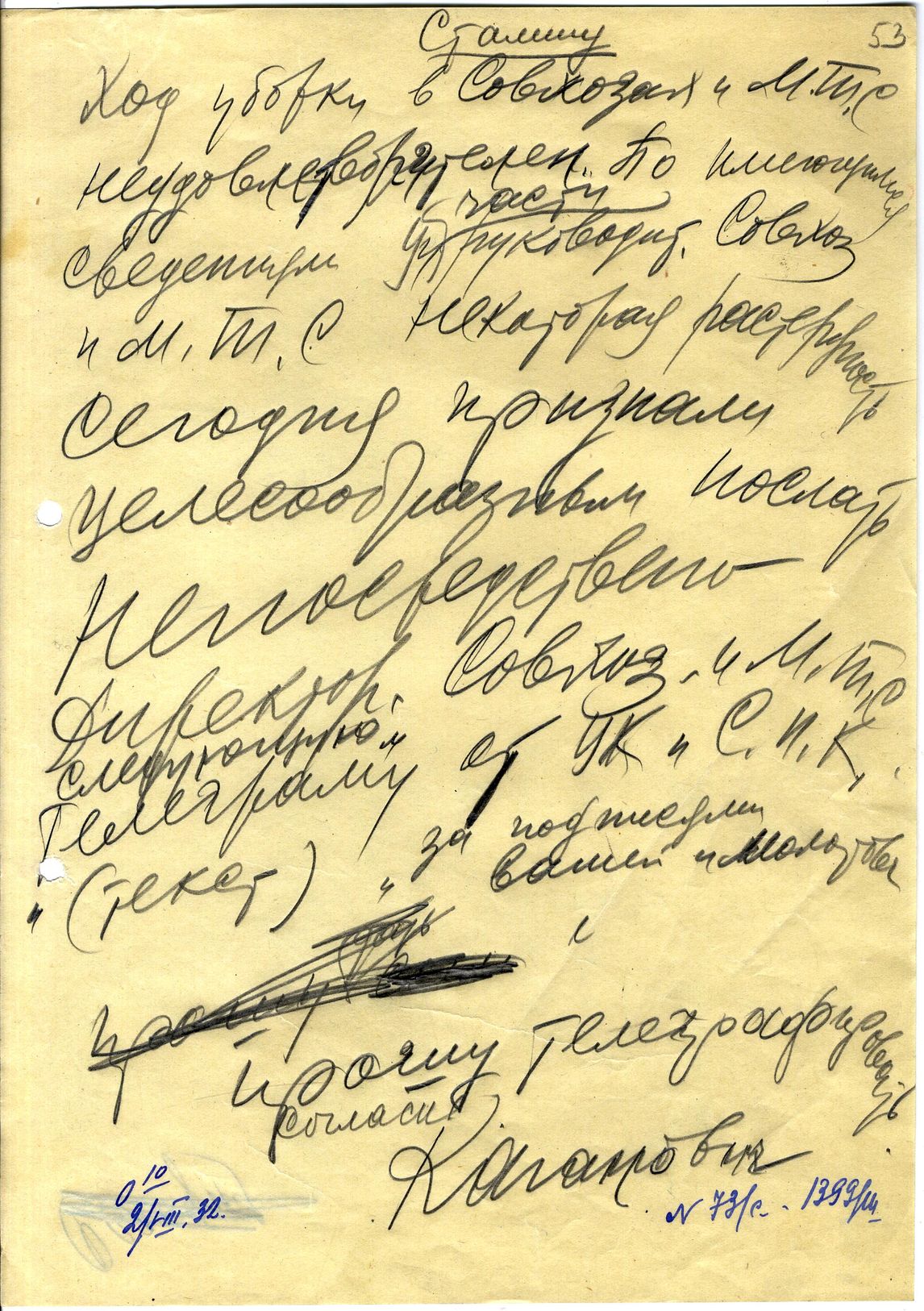 ШИФРОТЕЛЕГРАММА // ЧЕЙ ДОКУМЕНТ // КАГАНОВИЧ ЛАЗАРЬ МОИСЕЕВИЧ, ссс